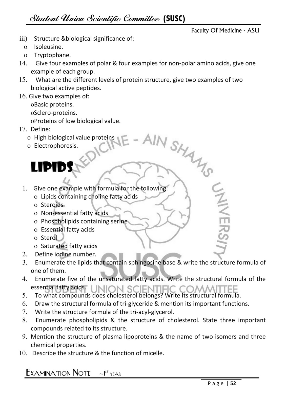 اسئلة Biochemistry اولى طب