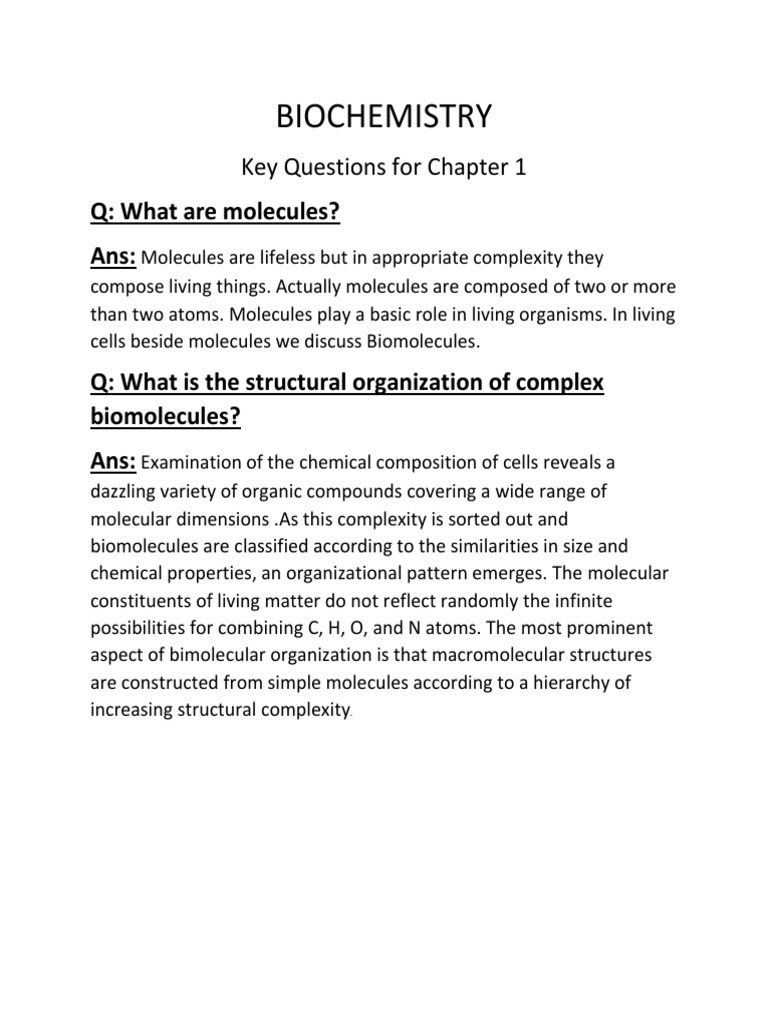 Questions Of Biochemistry With Answers Of All Chapter