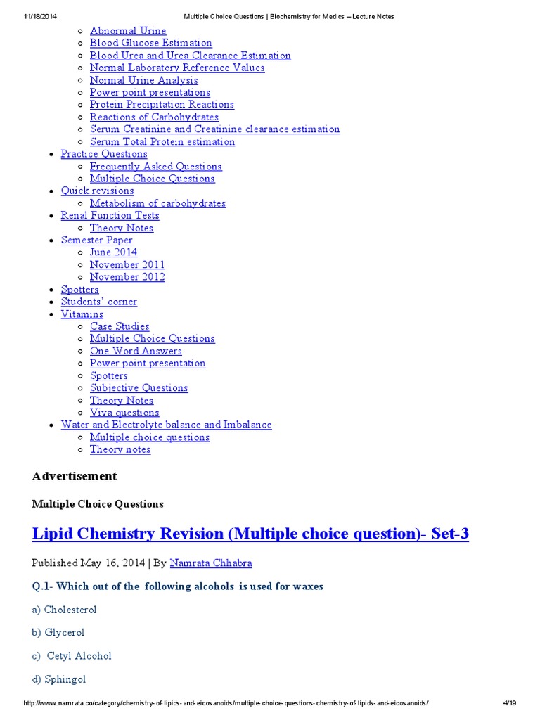 Biochemistry Mcq Lipid 25k Views