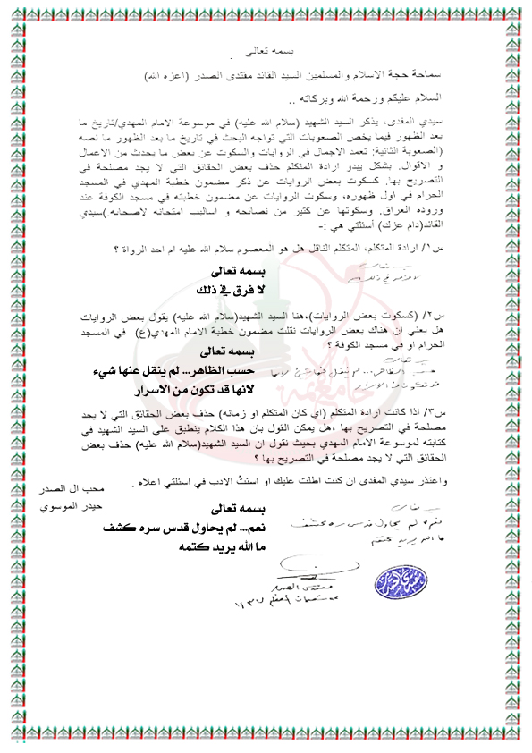 اسئلة حول موسوعة الامام المهدي عج استفتاء السيد القائد مقتدى الصدر