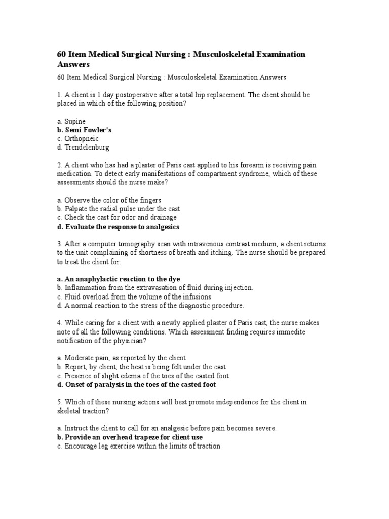60 Item Medical Surgical Nursing Musculoskeletal Examination Answers