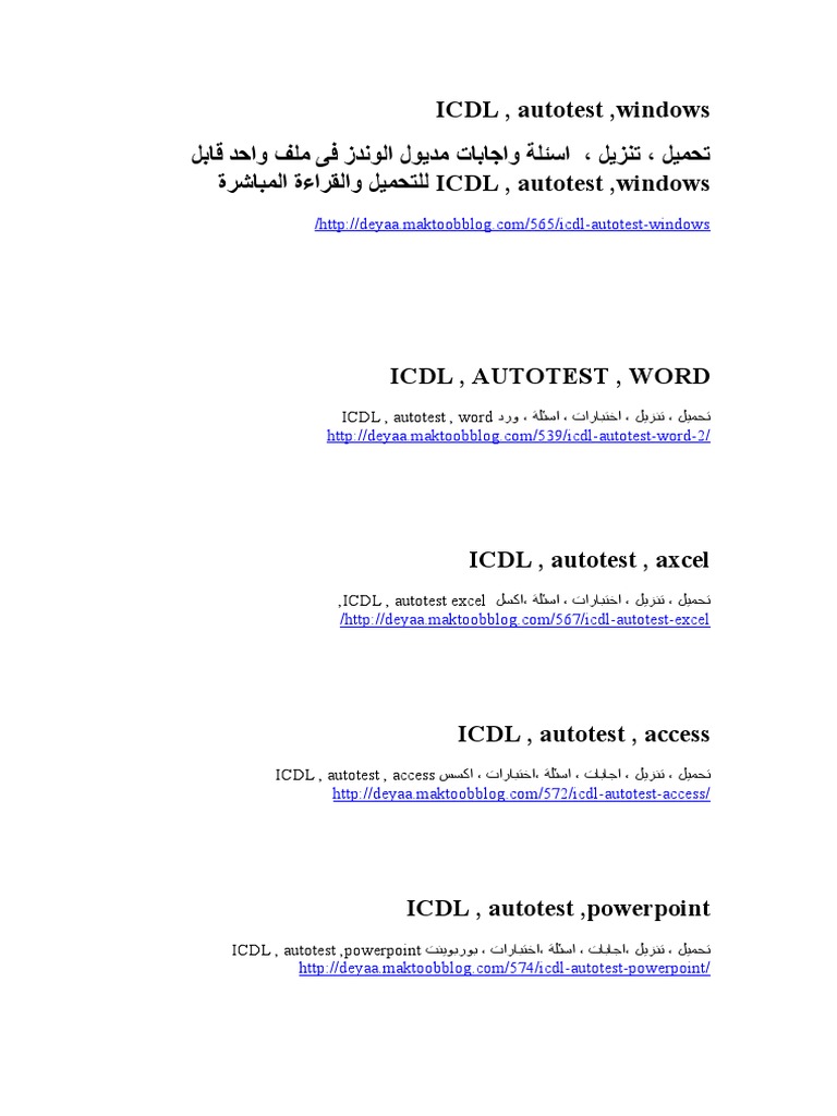 اختبارات Icdl امتحانات اى سى دى ال عربى وانجليزي حديثة Icdl