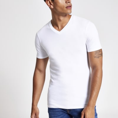White V Neck T Shirt Mens